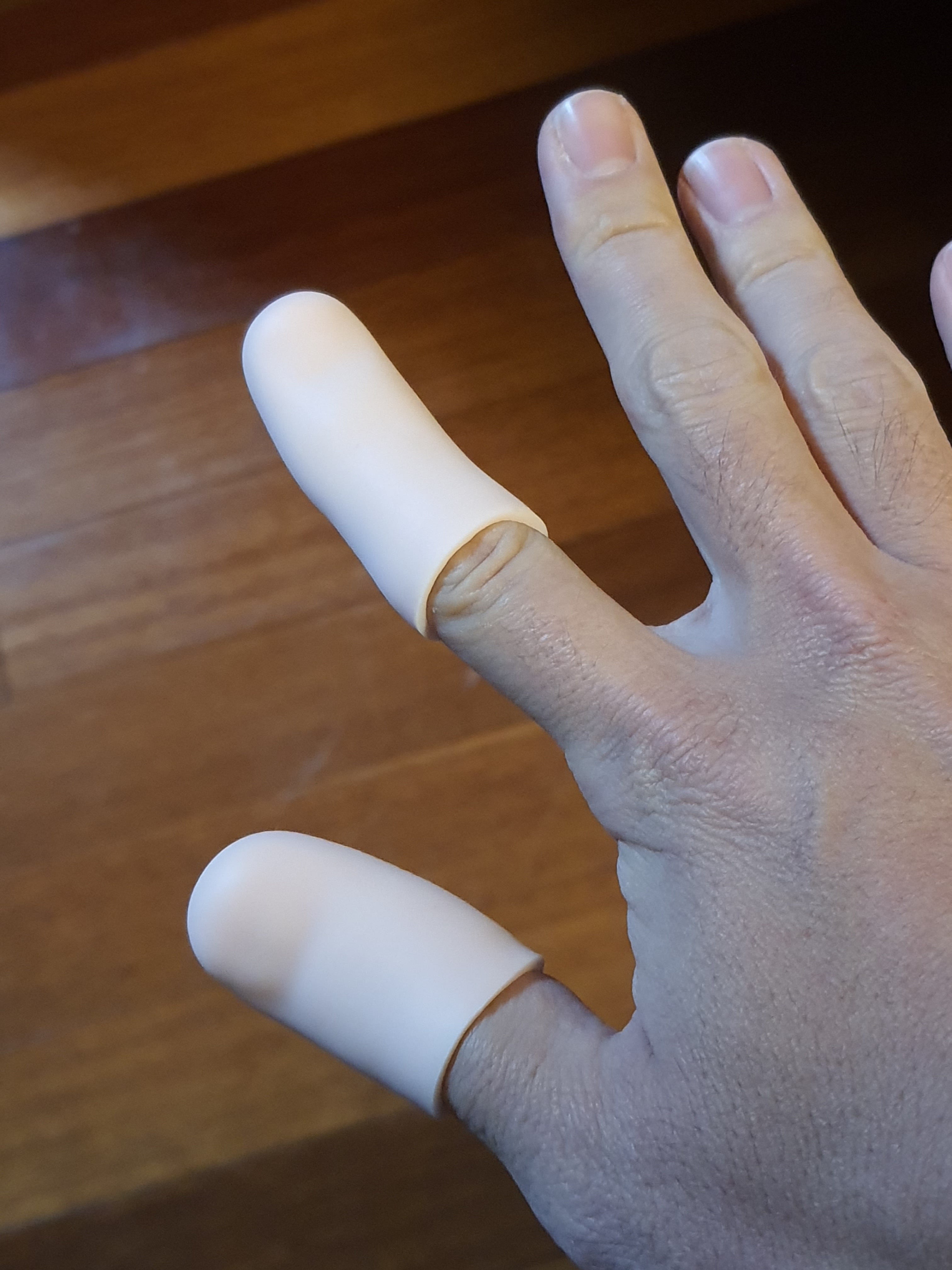 毎朝4時前に外に縄跳びしに行く時、親指と人差し指が寒さで痛すぎて、縄跳びが継続できない問題を、この写真の指サックで解消しました。